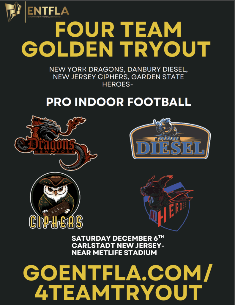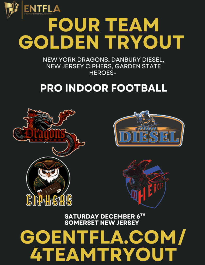 This is your chance to play professional arena football. The Golden Tryout, powered by ENTFLA, serves as the official combine for our inaugural 2026 season, featuring four founding teams: